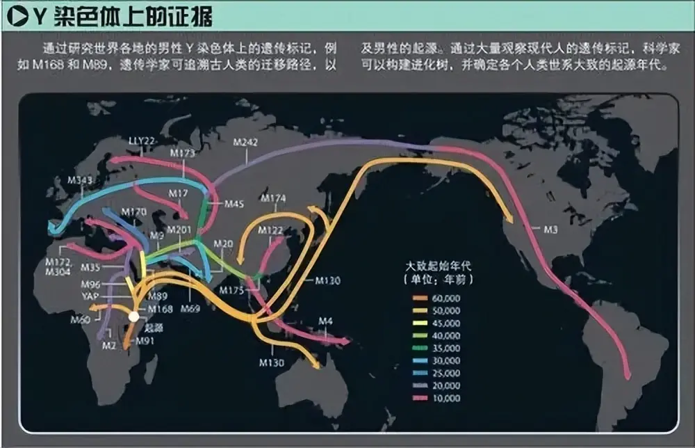 科学家们利用现代基因学技术,能够追踪到现代人类的祖先,他们确实是来自非洲。这一结论主要基于“Y染色体”和“线粒体DNA”的研究。